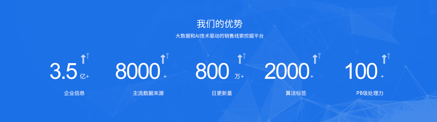 全網(wǎng)企業(yè)數(shù)據(jù)覆蓋,每日數(shù)據(jù)更新量超過百萬條,確保線索資源全、新,保障恒定需求輸出