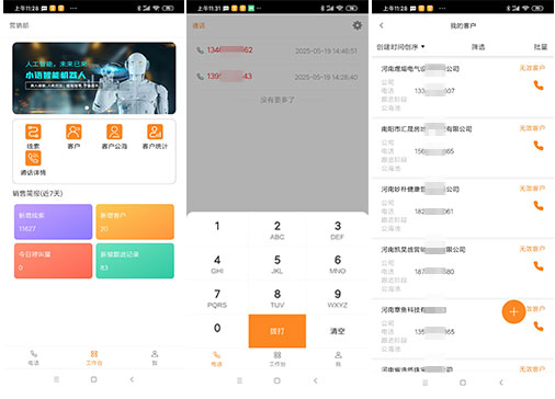 系統(tǒng)智能分配線路,保障通話質量,還能檢測空號、過濾無效號碼,結合客戶管理模塊,實現(xiàn)全流程銷售管理,提升業(yè)績。